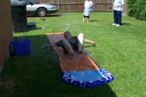 I was amazed as I watched these kids go time after time. Slip, Slide, start over. Slip, slide, start over. Josh, our 14 year old had a great time and I had a great time watching him. The fact of the slip and slide is that the bigger you are the harder it is on the body. Josh is 5’10” and 200 plus pounds. It was hard for him to slip, slide and start over so much, but he did anyway.