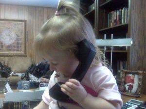 My Future Secretary August 26, 2008 / danny777 Hannah came by the office today and showed her secretary skills. She was busy on the phone, talking away, although we do not know what she said. I have a great secretary now, but perhaps in the future, Hannah will work for me:) Share this: Click to email a link to a friend (Opens in new window) Email Click to share on Facebook (Opens in new window) Facebook Click to share on X (Opens in new window) X Click to print (Opens in new window) Print Like Loading...