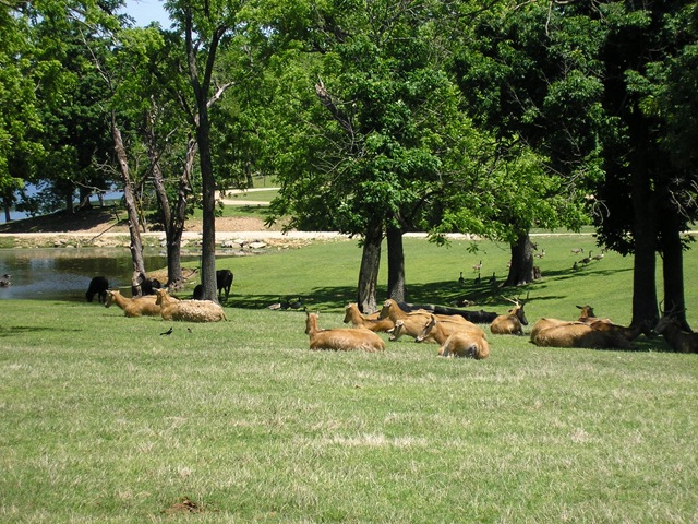 Today on our day off we drove to Gentry, Arkansas to the Wilderness Drive-thru Safari. It was a great surprise! I have been to a few of these types of safaris that brag about all these exotic animals, but I usually leave disappointed. Not so with this one. It was the best Safari I have seen. It had hundreds of exotic animals that could be seen through a four mile drive thru on their property that sprawled through the beautiful country of Northwest Arkansas. The animals were out in the open where you could actually see them (unlike the zoo). The park had a petting zoo that had many types of animals including, turkeys, kangaroos, zebras and prairie dogs.