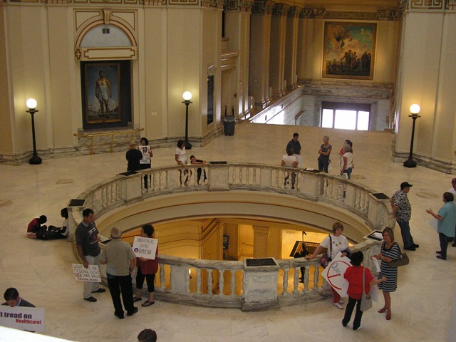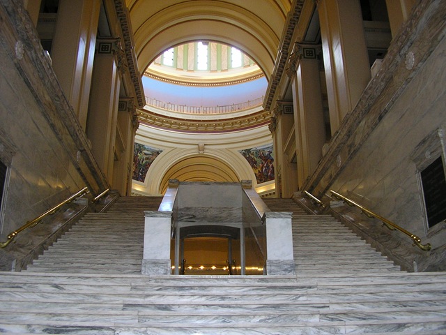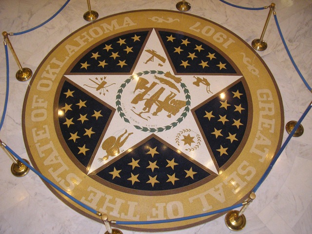 While on vacation last week, Josh and I toured the Oklahoma State Capitol.  I was quite impressed, to say the least.  The architecture and the decor was top-notch.  In the late 90’s and early 2000’s, the capitol went through a major renovation to restore it to the original design.  This meant that a complete remodel of many portions of the building brought it back to the way it was originally designed.  The House and Senate chambers were redone.  In 2002, they added the dome on top of the capitol.  This was a multi-million dollar project.  The dome was in the original plans but the state ran out of money.  To celebrate the hundredth anniversary of the capitol, the governor wanted to have the dome put on.  The dome was added before the anniversary date.