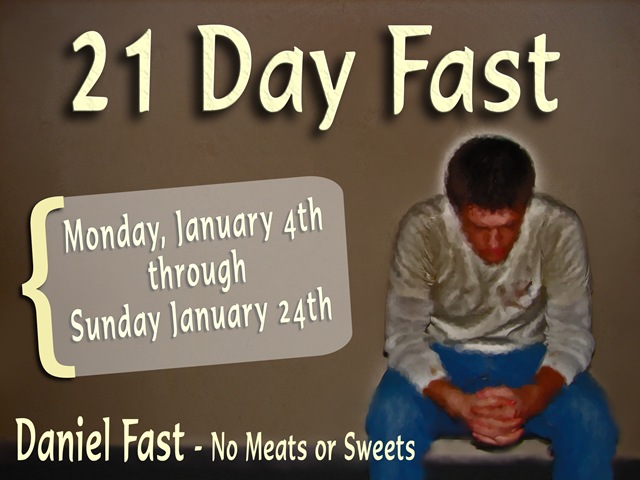 Our annual 21 day Daniel Fast begins today. We have decided to set aside the next three weeks for prayer and fasting. We are asking everyone who is able, to fast from meat and sweets.